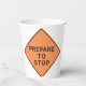 A road sign that says prepare to stop. This design looks really effective on these Paper Cups