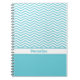 A trendy notebook with a popular aqua blue and white chevron pattern that can be personalised by adding your name.