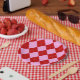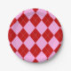 Preppy Argyle Tartan Diamond Plaid Red Pink Paper Plate