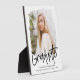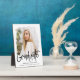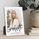 Celebrate your graduate's achievement with a custom graduation photo keepsake. The plaque features the graduate's photo inside of a white textured mask frame with "Graduate" in a black handwritten script. Personalise the graduation photo plaque by adding the graduate's name, school, and graduation year.