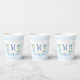 Enhance your drink service with our coastal-themed paper cups, featuring a hand-painted watercolor blue and white monogram crest of blue and tan. Ideal for nautical-themed weddings, baby showers, and events, these stylish and personalised cups add a sophisticated touch to your celebration. This paper cup design features a hand painted coastal crest with hydrangeas, foliage, an anchor and oyster shells. The crest shape is a ships rope border.