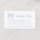 Preppy blue bow ribbon book for baby boy shower enclosure card