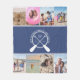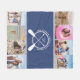 Preppy blanket in blue and white for your lake house. Add your family name, initial, and the year established to a nautical monogram of crossed paddles over a rope circle. The blanket also features a photo collage with your family photos. Nautical lake house blanket in white and blue personalised with your monogram and photos.