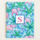 This preppy elephant monogram planner will keep you organised. Personalise with an initial. This pink elephant, palm tree, coconut pattern in pink, green and blue can be found on other items in my shop, PageCreativeDesigns.