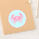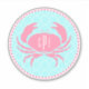 Illustration of a pink crab over a blue and white quatrefoil design with pink dot trim. Personalise the monogram.