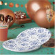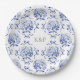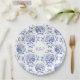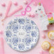 Preppy Blue Toile Hydrangea Bow with Name Paper Plate