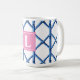 Preppy Blue Trellis Bamboo Pattern Monogram Coffee Mug