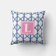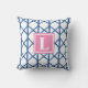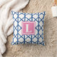 Preppy Blue Trellis Bamboo Pattern Monogram Cushion