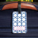 This monogram luggage tag with the blue trellis bamboo is so bright and colourful for your bag for your next trip. Personalise with a letter. This blue trellis bamboo pattern can be found on more items in my shop, PageCreativeDesigns.