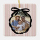 Festive Crimson Red Preppy Stripe Pattern with Black Ribbon Bow Photo Frame, Christmas Ornament.