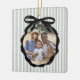 Festive Preppy Pine Forest Green Stripe Pattern with Black Ribbon Bow Photo Frame, Christmas Ornament.
