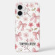 Add your name to this cute preppy iPhone case with pink bows and flowers pattern, in a feminine coquette style.