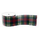 This design is a tartan or plaid pattern featuring a festive color palette, primarily consisting of cheery red, deep forest green and navy blue, overlaid with thin intersecting lines of white and gold. The overall effect is sophisticated and traditional, with the dark greens and reds making it highly suitable for use as Christmas wrapping paper, offering a classic and subtly festive aesthetic.