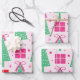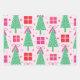 Preppy Christmas Trees with Pink Bows and Gift Box Wrapping Paper Sheet