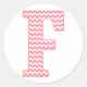 Preppy Classic Pink Chevon Letter F Monogram Round Sticker