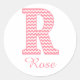 Preppy Classic Pink Chevon Letter R Monogram Round Sticker