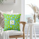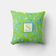 Preppy Coastal Sea Shells on Lime Green Monogram Cushion