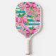 Cute coquette pink and blue green teal striped bow pattern preppy pickle ball paddles. A feminine girly design for the girl who loves pickleball. Perfect for a Mother's Day gift for mum or for any ladies into the cottage or grandmillenial aesthetic. Customisable with initial monogram or whatever text you would like. These paddles make a great gift for the pickleball lover!