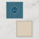 Preppy Dark Blue and Cream Stripe Monogram Card