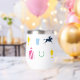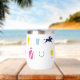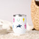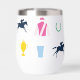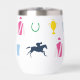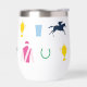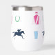 Perfect for a day at the races, this insulated wine tumbler features a pattern of iconic horse racing silhouettes: jockey silks, race horse silhouette, horse shoe, julep cup and horse trophy. The pattern is in a vibrant colour palette.