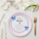 Preppy First Birthday Chinoiserie Ruffle Cake Bows Paper Plates. Editable paper plates, edit the text to make it your own.