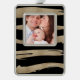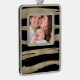 preppy geometric pattern black and gold stripes silver plated framed ornament
