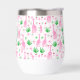 This preppy monogram pink giraffe wine tumbler is perfect for adding a touch of whimsy to your wine. The playful design features pink giraffes with cosmopolitans against a backdrop of flowers and long grass. The colours are bright and the pattern is eye-catching, making this wine tumbler a fun and unique choice for any occasion. Add a monogram to personalise them and give them as a housewarming or birthday gift. They're sure to impress your guests and make your drinks even more enjoyable.