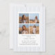 Celebrate your graduate in timeless preppy style with this elegant graduation photo collage announcement card. Featuring a soft blue stripe background and ribbon frame detail, this design includes a front photo display and a multi-photo collage layout on the back, allowing you to showcase multiple memories.