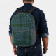 Preppy Green and Blue Plaid Monogram Printed Backpack