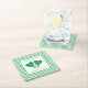 These custom coasters are perfect for bachelorette parties, couples showers, weddings and more with a pickleball theme. These paper coasters feature illustrations of heart shaped pickleball paddles and a pickleball and are ready to be customised with your own headline, initials on the paddles and full names below all with a preppy green and pink colour scheme and a green and white gingham background.