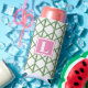 This monogram bamboo trellis seltzer can cooler makes a great gift for a girls weekend, sports weekend or just hanging out in your neighbourhood. Personalise with a letter. This green trellis bamboo pattern can be found on more items in my shop, PageCreativeDesigns.