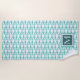 White background with whale illustration in a seamless pattern and a custom monogram on a double square in sans serif font