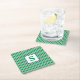 Preppy Green White Link Pattern Navy Monogram Square Paper Coaster