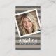 Preppy Grey Striped Pattern Custom Name and Photo Business Card