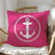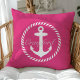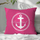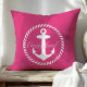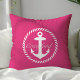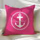 Preppy Hot Pink & White Nautical Anchor Monogram Cushion