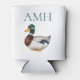 This preppy monogrammed can cooler features mallard ducks in classic shades of green, blue and brown. Personalise the monogram on the front with your choice of initials and special text on the back in matching green. Great for sportsman inspired gift bags.