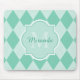 Preppy Mint Green Argyle Girly Monogram and Name Mouse Mat