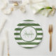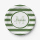Preppy Monogram and Chunky Treetop Green Stripes Paper Plate