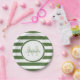 Preppy treetop green and white chunky stripes paper plates. Personalise this trendy pattern by adding the name and monogrammed initial of the girl of the hour. This cool monogram design is part of the Treetop Stripes Party Essentials Summer Colour Collection.