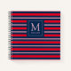Modern stylish preppy striped monogrammed notebook which can be used as a book of to-do lists, personal or work notes, ideas and thoughts. The notebook can be personalised with the inclusion of a monogram initial and name. A variety of spiral colours are available and the option between soft and hard cover.