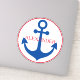 This preppy vinyl sticker features a classic nautical anchor in blue on white with an accent of red. Personalize with your choice of name or special text. Great for personalized gift bags and party favors.