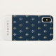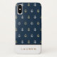 Get your personalised iPhone case for an elegant look with preppy chic pattern of gold and silver anchors on a background of your choice navy, turquoise or white.. Monogram is on a white border at the bottom in sans serif gold font.