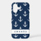 Preppy nautical navy blue anchor pattern custom iPhone 17 case . Custom phone covers for him or her. Cool modern typography design with maritime print. Classy new case with stylish lettering. Unique Christmas or Birthday gift idea for men, women and kids. Apple smartphone accessories, version Eleven. Add your own name, monogram or quote. Also available for older Apple models like X, 8, 7 and Samsung Galaxy smartphones. Special presents for husband, wife, boat captain, uncle, aunt, sailor, teenager etc.