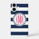 Preppy Nautical Navy & White Stripe Pink Monogram Case-Mate iPhone Case