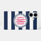 Dress your phone up for a trip on a yacht with this sweet nautical monogram case. Design features wide navy blue and white stripes with your three-initial monogram in pink, surrounded by a circular rope badge.