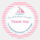 Preppy Nautical Pink Sail Away Birthday Thank You Classic Round Sticker