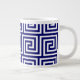 Preppy Navy Blue White Greek Key Pattern Large Coffee Mug