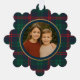 Personalize with your favorite family or children’s photo, names, and year to create a meaningful holiday memento that will be treasured for years to come. The elegant round photo frame paired with the scalloped plaid ornament shape brings a polished, preppy touch to your Christmas greetings.