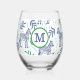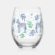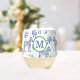 Preppy Navy Zebra Martinis White Monogram Stemless Wine Glass