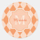 Preppy Orange Argyle Girly Monogram and Name Classic Round Sticker